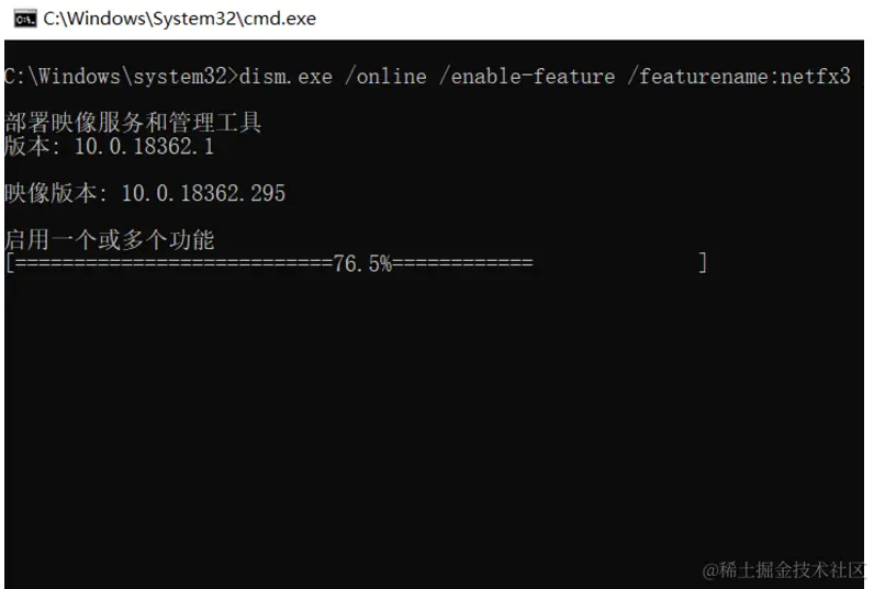 随后会显示启动一个或多功能,等待部署进度100%即可, 黑框会自动退出。
