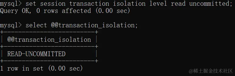 | 1 | -设置当前会话事务隔离级别为:读未提交 set session transaction isolation level read uncommitted; | |