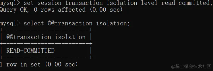 | 2 | -设置当前会话事务隔离级别为:读已提交 set session transaction isolation level read committed; | |