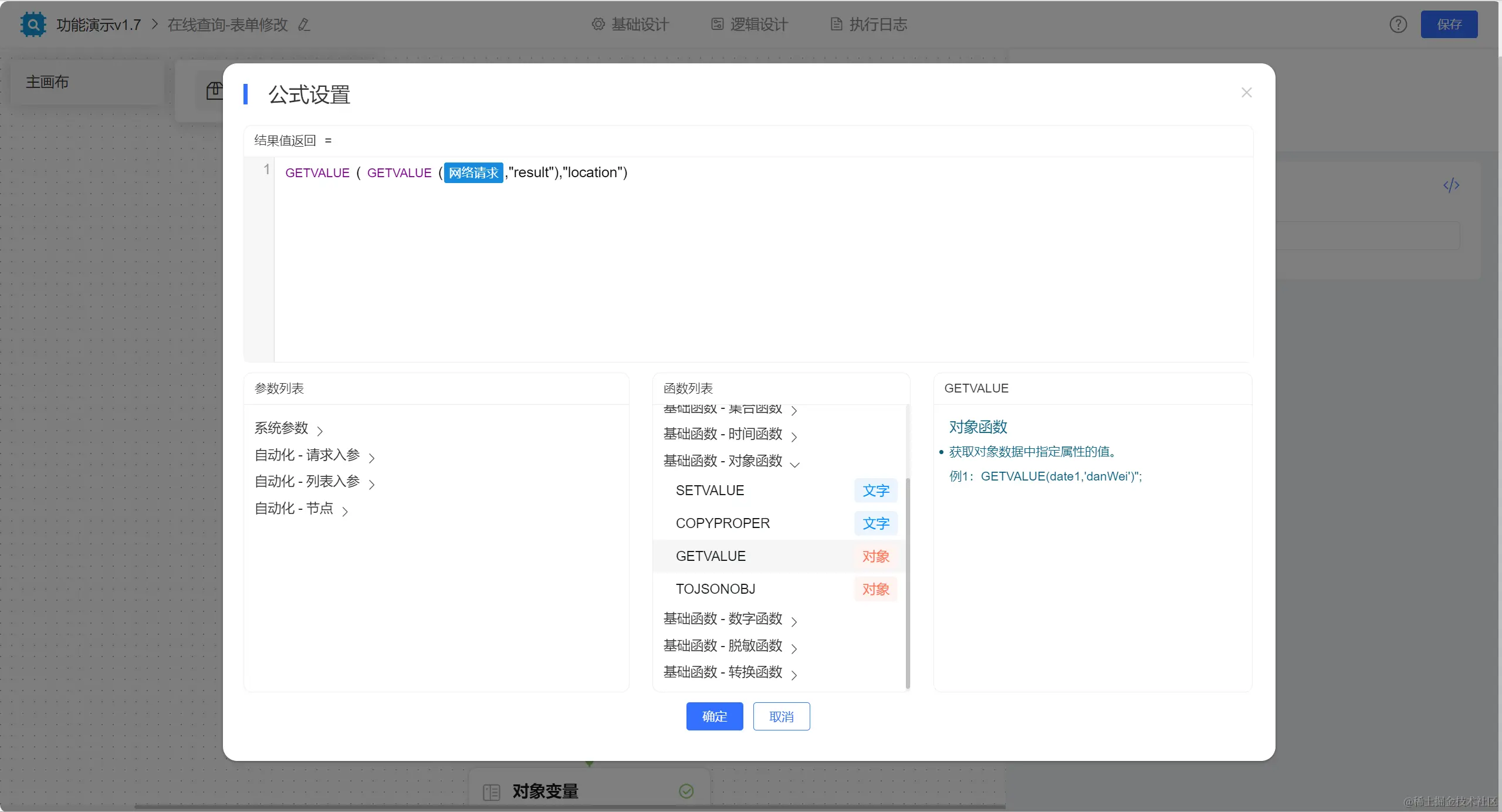 按钮组件触发逻辑远程调用接口,获取到的返回值回显到表单字段组件中。