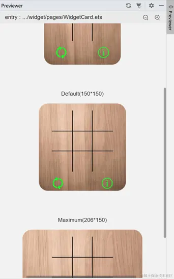展开 Previewer,预览器中可以查看页面效果,其中 Default 尺寸与大部分手机的实际效果是相同的。可以方便的查看自己的 UI 代码写出来是什么效果,也可以测试交互代码,非常方便。