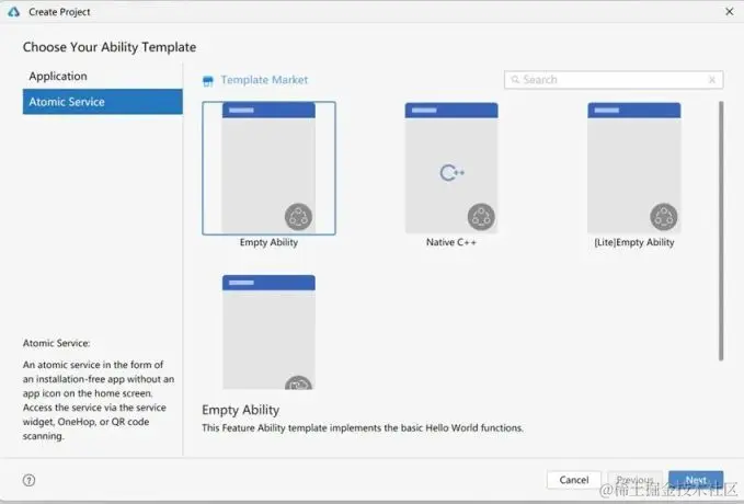 选择"Atomic Service"即建立一个元服务项目,点击"Next"。