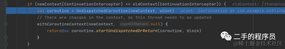 因为新旧 context 对应的 ContinuationInterceptor 属性都是 Dispatchers.IO,所以不用切换线程。