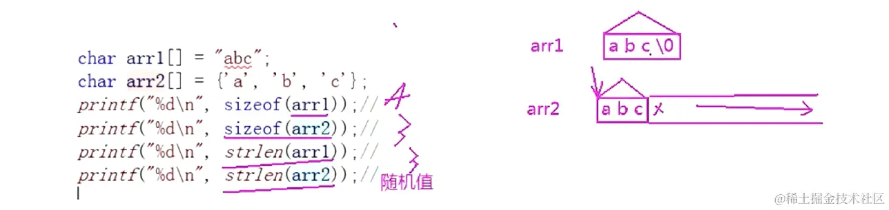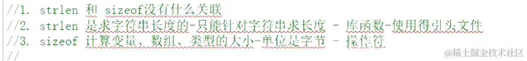 sizeof() 与 strlen() 的区别 ZWF 2023-12-01 40 阅读1分钟 如上图所示我们发现sizeof()和strlen()所计算的字符串长度结果是不一样的!!!! why? 事实上,sizeof()是在计算数组所占空间的大小 而strlen()是在求字符串的长度————而且是\0之前的字符个数 下面我们做一个总结 值得强调的是strlen()只能求字符串长度(且只能求\0前面的字符数)(如果没有\0则无法正常输出) 而sizeof()能求多种