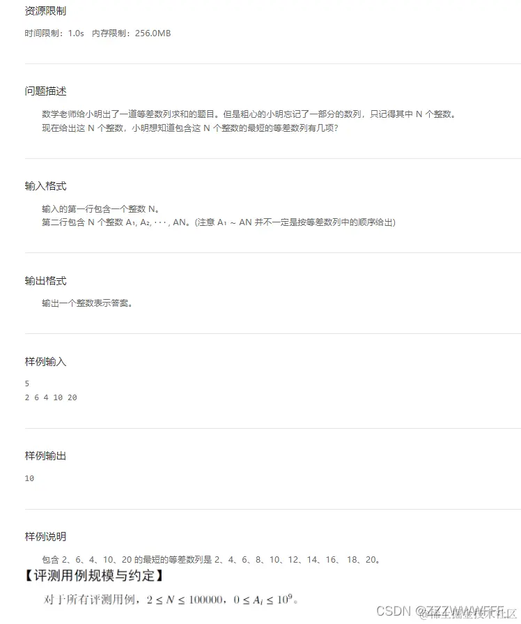 然后我们的目标是找到那个项数最少的等差数列,并且输出这个项数,那么如果我们想要一个等差数列项数最少,这个等差数列必然公差最大。