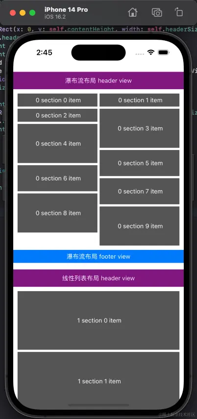 该文章参考借鉴了iOS 多section瀑布流实现(swift)文章,由此篇文章内容受益匪浅!