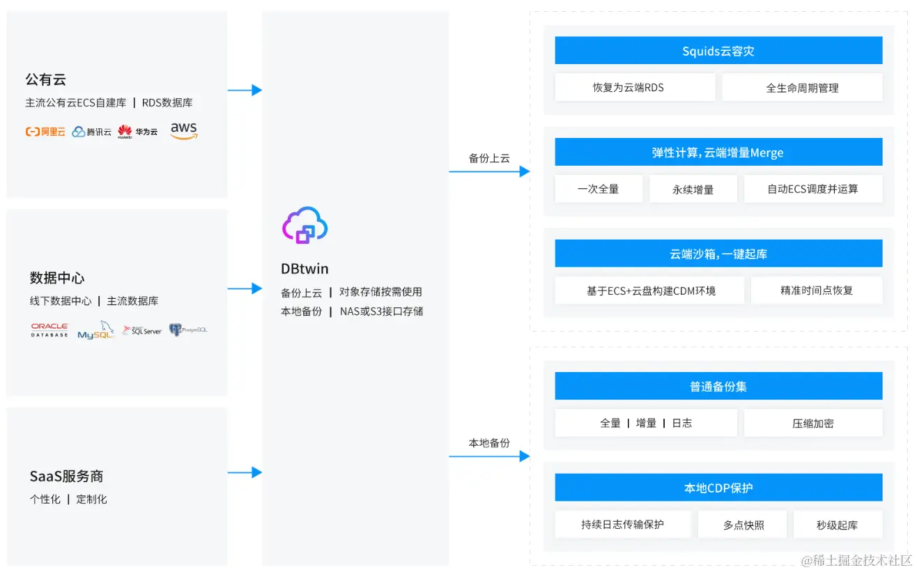 2、Squids 云备份DBTwin : 构建于公有云的数据库备份服务,提供数据上云,云上沙箱,云上容灾等企业级功能。web化界面,鼠标点点即可完成全部操作。