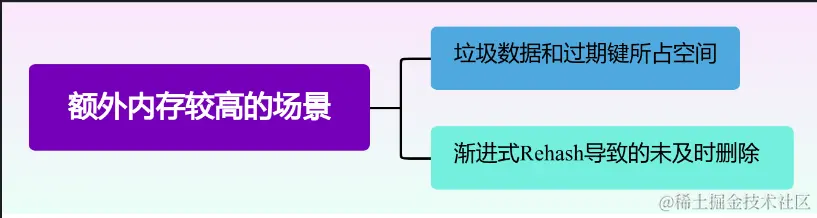 渐进式Rehash导致的未及时删除:当Redis进行渐进式Rehash过程时,会在新哈希槽中分配内存空间,并逐步迁移旧哈希槽中的键。然而,在迁移期间,如果有新的写入操作,可能会导致旧哈希槽中的键未被及时删除,从而占据了额外的内存空间。