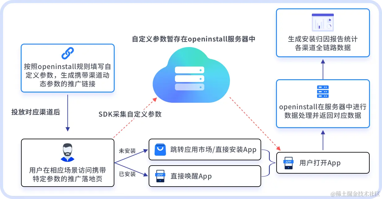 openinstall传参安装功能可以精确获取App每一次安装的分享(或推广)来源,目前已经支持了近70亿次的App安装归因。