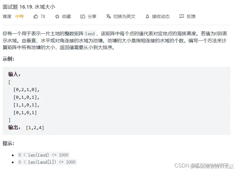 if(land[i][j]==0)//遇到水域就进入搜索并且计算水域数量