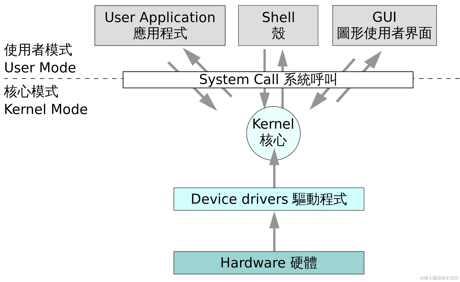 就像在餐厅里,你不能直接进厨房做饭,而需要通过服务员来点菜。同样,操作系统会将可能产生多个程序访问冲突的资源保护起来,提供API,软件只能通过系统调用这些API来操作对应的资源。比如应用程序要访问网络、读写文件等都需要通过系统调用来完成。