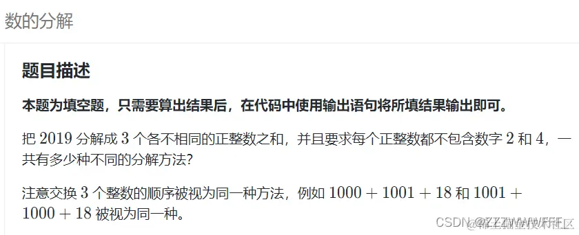 本题思路也比较简单,暴力求解即可,值得注意的是“分解成3个各不相同的正整数”和“数字的顺序问题”,3个数字全排列即A33 =6 ,所以最后的结果要除以6才等于本题的答案!!!!!!!!!