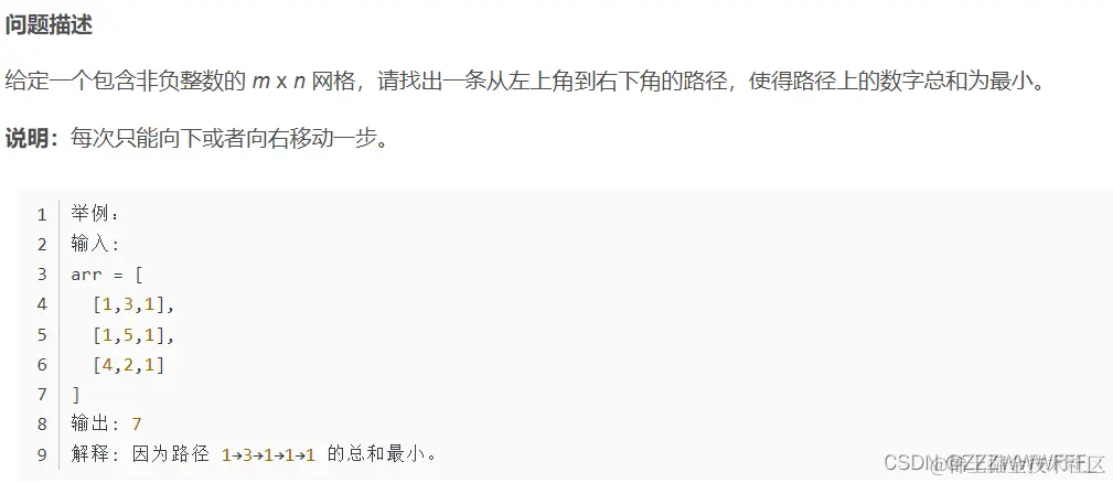 dp[i] [j] = min(dp[i-1][j],dp[i][j-1]) + arr[i][j];// arr[i][j] 表示网格种的值