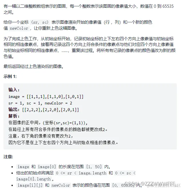 对了这里有个小坑,就是可能出现image[sr][sc]已经是newcolor,所以我们需要先判断一下再搜索