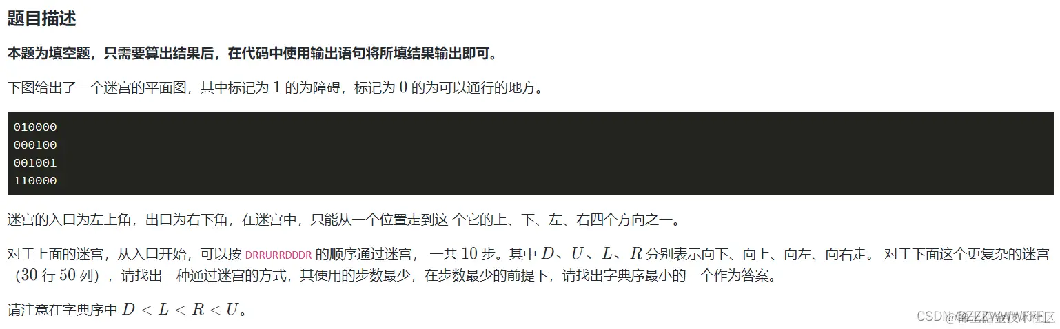 下面这个代码是我找来的(来自蓝桥杯—迷宫_聪明绝顶的你与即将秃头的我-CSDN博客)