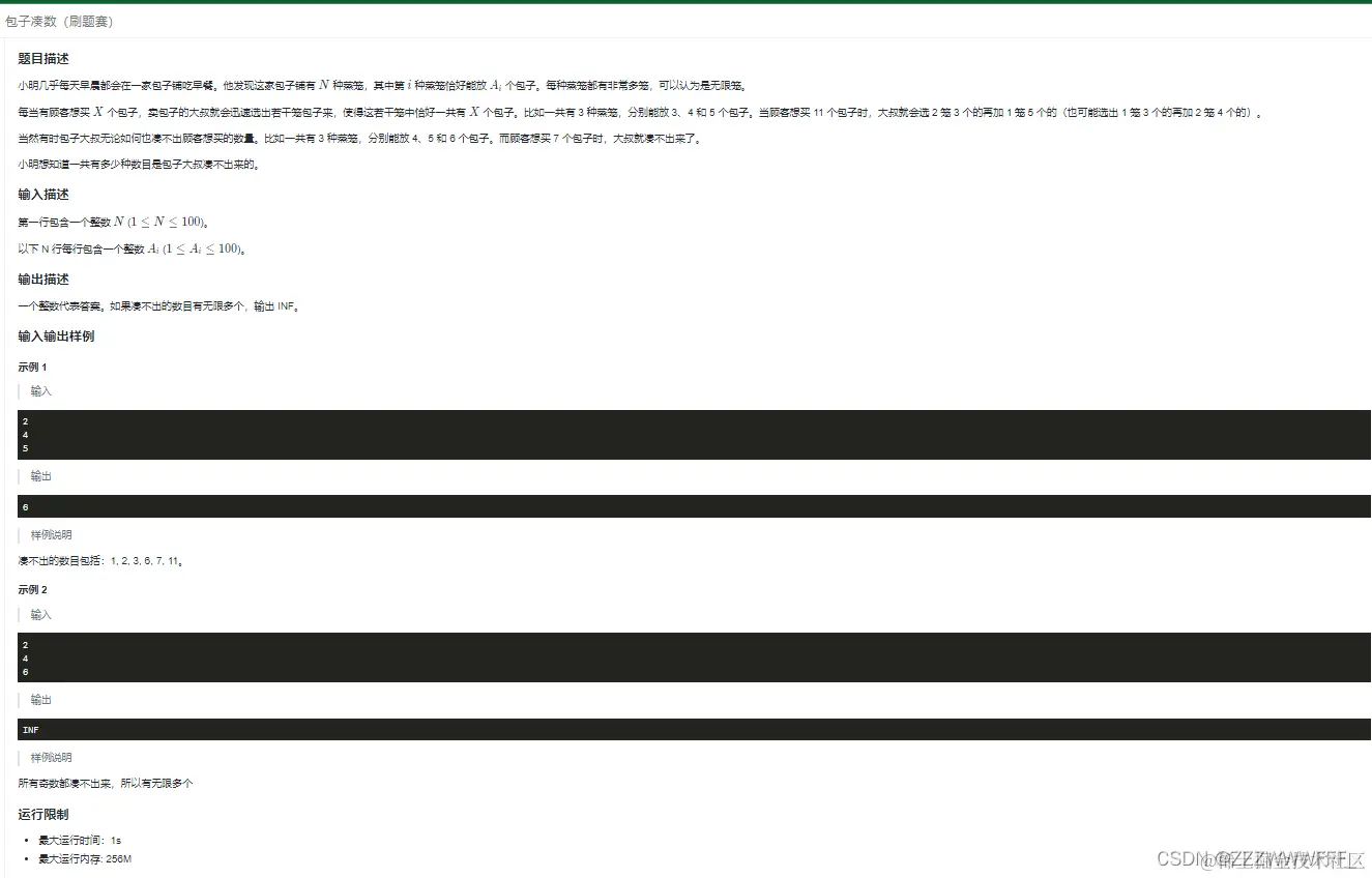 首先,如果客户需要的包子为0的话,那么我们必定能够实现这种情况,接着这种情况,我们进行递推,如果说这种情况可以完成的话,那么即这个数字是可以用蒸笼实现的,那么这个数字加上任何一种 蒸笼能装包子的最大数 也都是能够用蒸笼实现的
