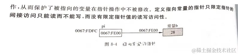 值得注意的是:定义指向常量的指针只限定指针的间接访问只能读而不能写,而没有限定指针值的读写访问性