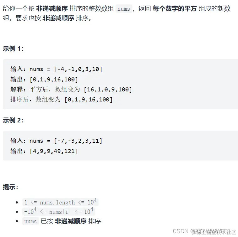 数组其实是有序的, 只不过负数平方之后可能成为最大数了。