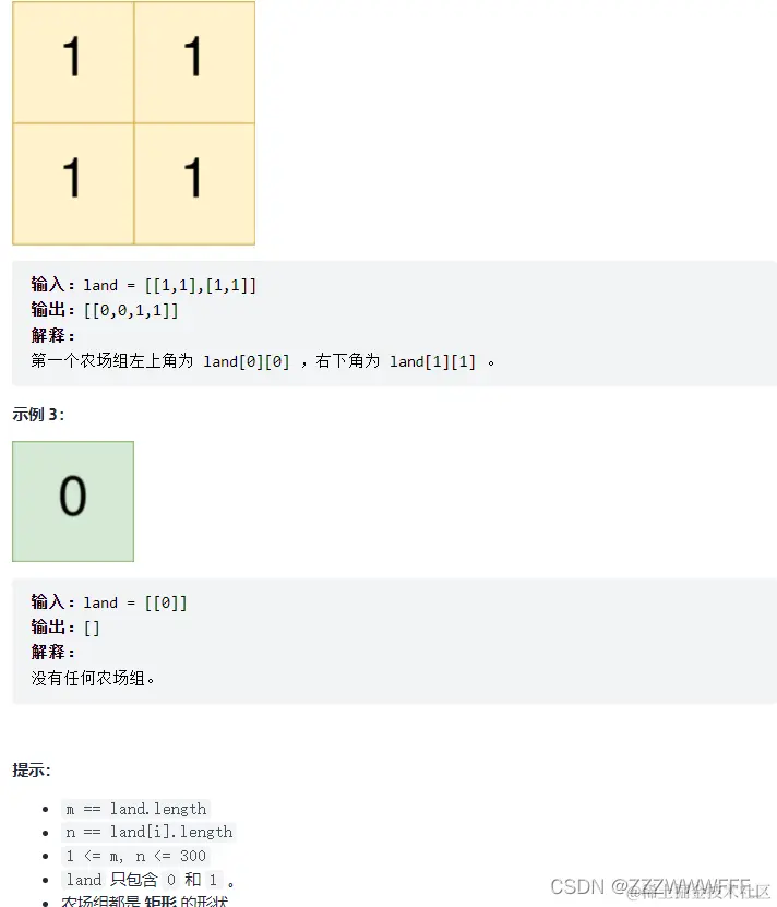 vector<vector<int>> findFarmland(vector<vector<int>>& land) {
