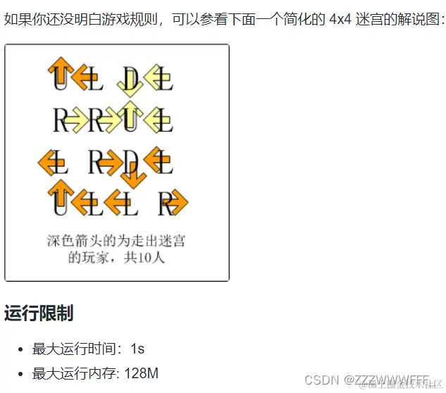首先,如果使用的是DFS,我们要明确该题“地图”中的每一个点要走的路线 实际上都是已经确定的,我们只要模拟每一个点的路线即可(一条路走到底),注意判断return的条件,return有两个条件,其中一个是该点的下一个点已经越界了,另一个条件是“在迷宫里兜圈子”即该点是右但下一步是左| |该点是下但下一步是上| |该点是左但下一步是右| |该点是上但下一步是下;