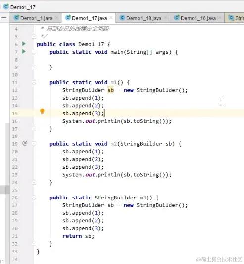 m3不安全,因为返回了,其他线程可以拿到返回结果