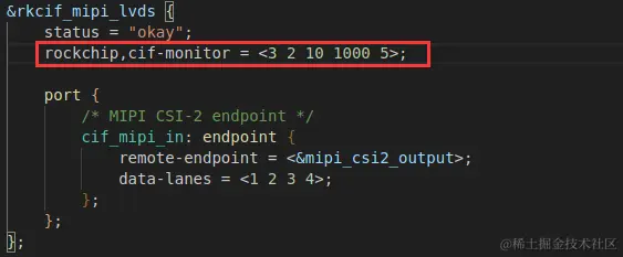 由于我使用的是 RV1126 开发板,所以这里重点介绍 RV1126 中的配置,而 RV1126/RV1109 都是通过设备树进行配置的,配置信息如下所示: