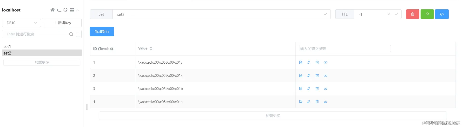 setOperations.add("set2","a","b","x","y"); // 往set2 插入abxy