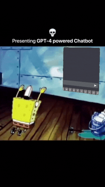 素材中,知名下海黄色动画男主角——海绵宝宝朝着【Chat & Ask AI Chatbot】不断磕头,魔性的动作与屏幕中不断涌出的高难代码形成鲜明对比,也使得该素材更具有亲和力和用户传播度。