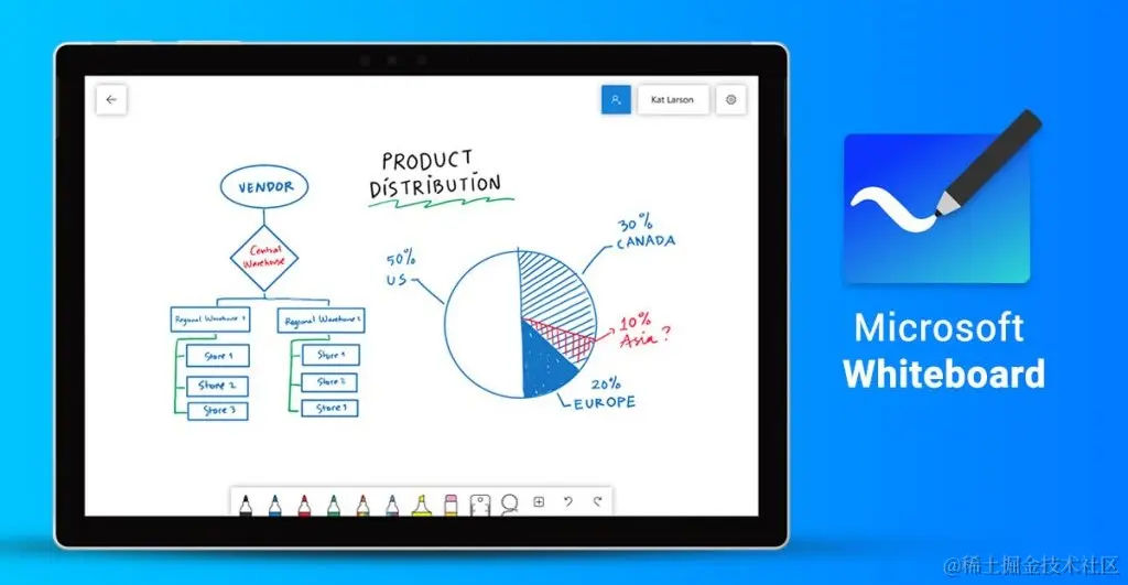 Microsoft Whiteboard是Microsoft 365套件中的免费应用,为团队提供了实时协作的共享可视化工作空间。 可用平台:Microsoft Whiteboard可在Windows和iOS上使用。 主要功能:Microsoft Whiteboard与其他Microsoft应用无缝集成,如Teams,提供添加注释、上传文件、绘图甚至切换到演示模式等功能。