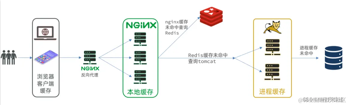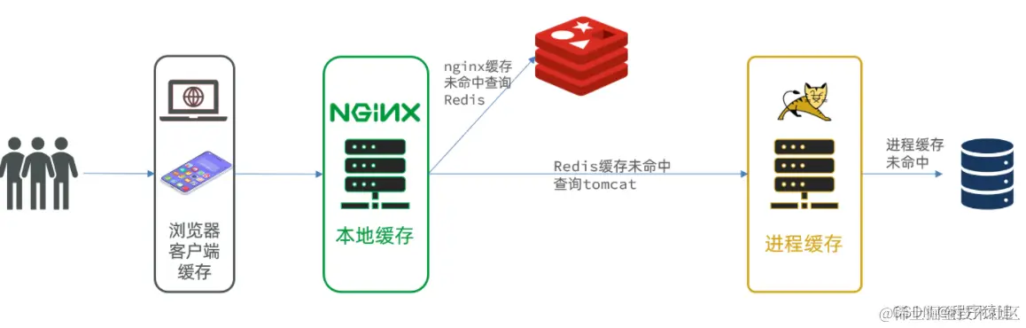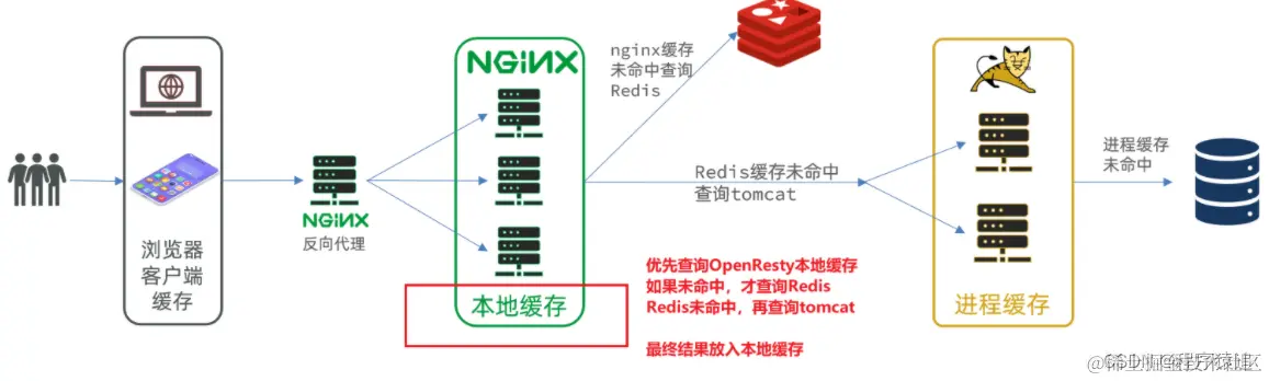 - 如果Nginx本地缓存未命中,则去直接查询Redis(不经过Tomcat)