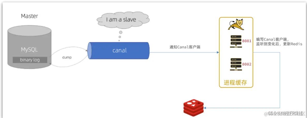 我们可以利用Canal提供的Java客户端,监听Canal通知消息。当收到变化的消息时,完成对缓存的更新。