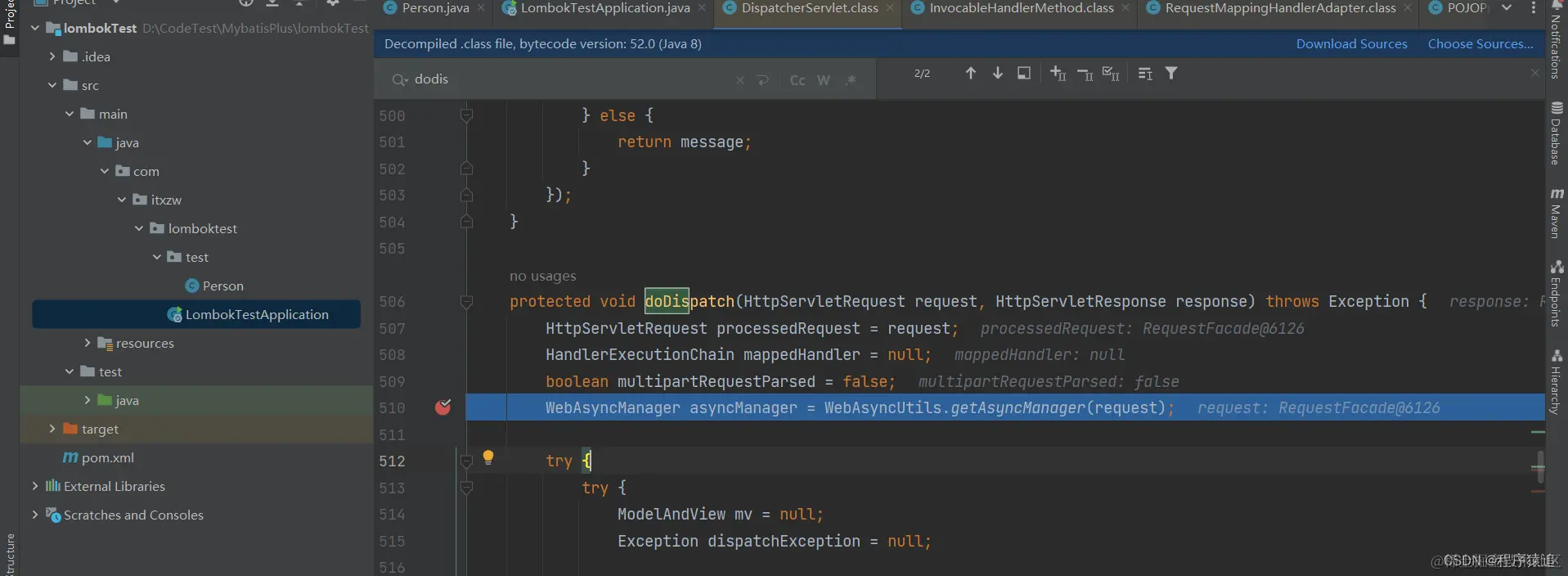 分析这个源码要对SpringMVC框架有一定的理解,它的最基础的请求处理也是基于原生的servlet去进行了一个扩展,它扩展的一个核心叫做 DispatcherServlet ,它的所有的http请求都会去走 doDispatch 这个方法。