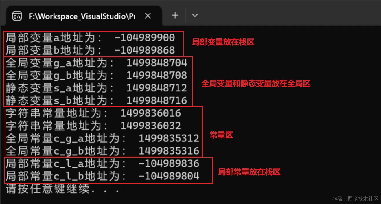 cout << "全局常量c_g_a地址为: " << (int)&c_g_a << endl;