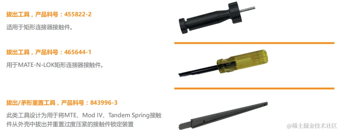 • 这些工具不仅适用于TE Connectivity产品,同样也适用于其他连接器制造商生产的产品