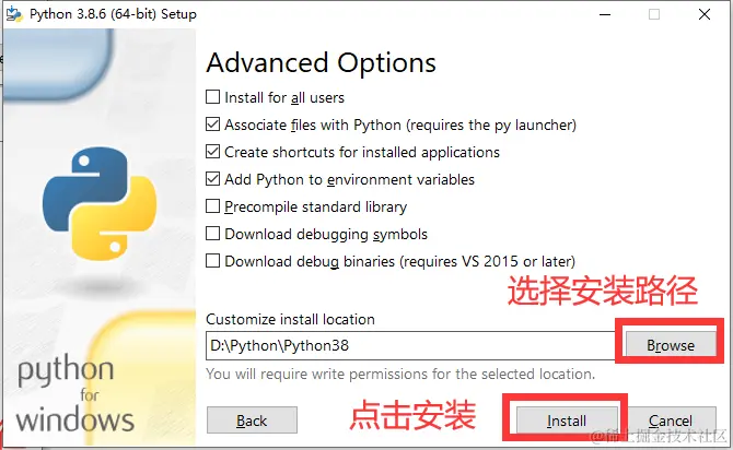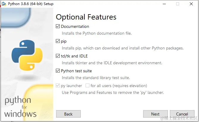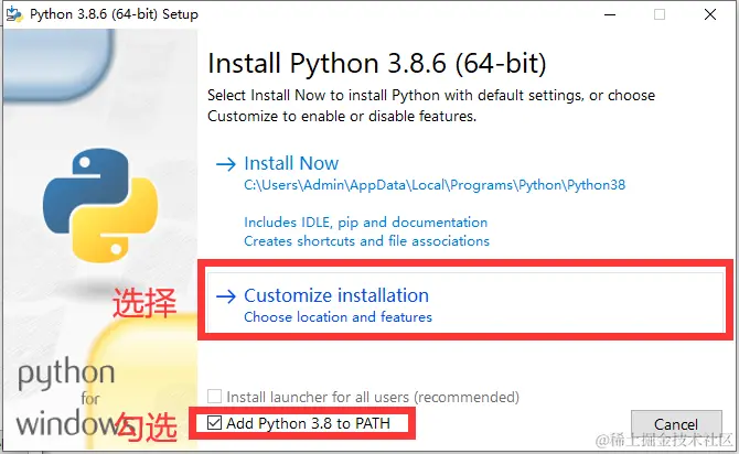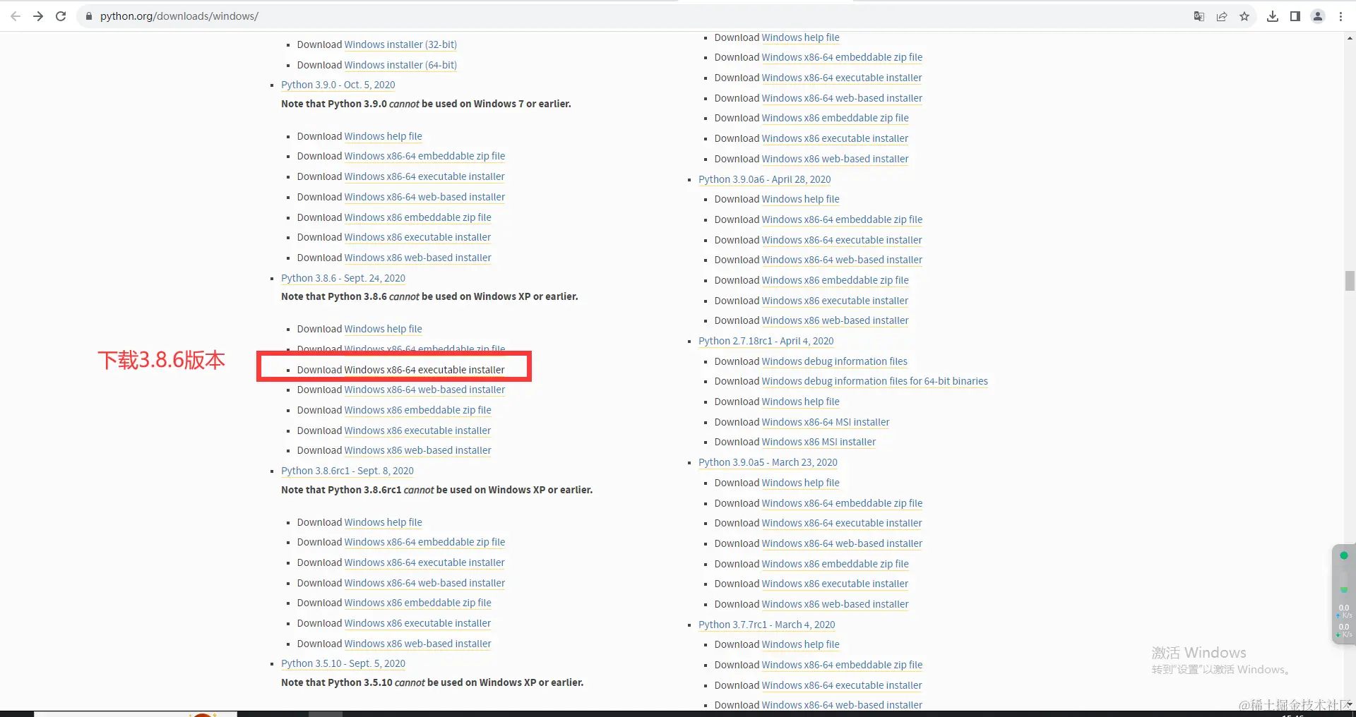 1.安装去官网下载python安装软件:www.python.org/downloads/w…,选择版本、安装文件,这里建议下载3.8.6版本