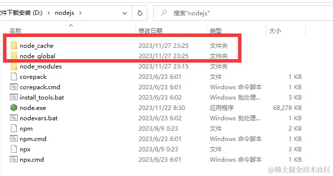 1.在node的安装目录下创建两个文件【node_cache】用于缓存、【node_global】用于全局
