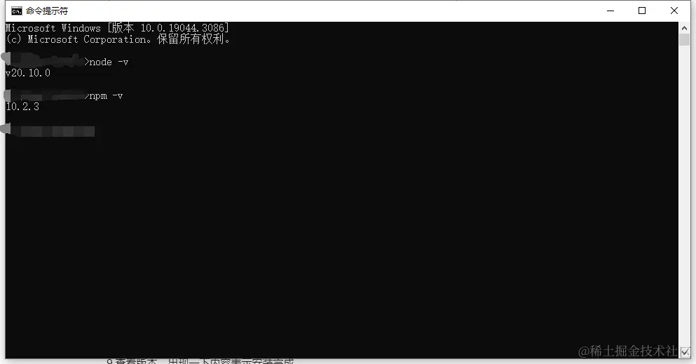 9.查看版本,输入node -v和npm -v出现一下内容表示安装完成
