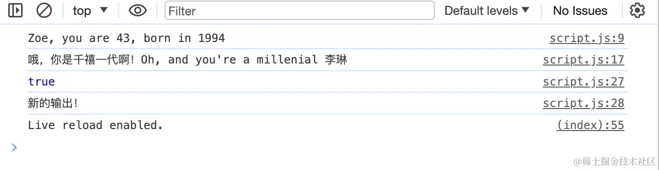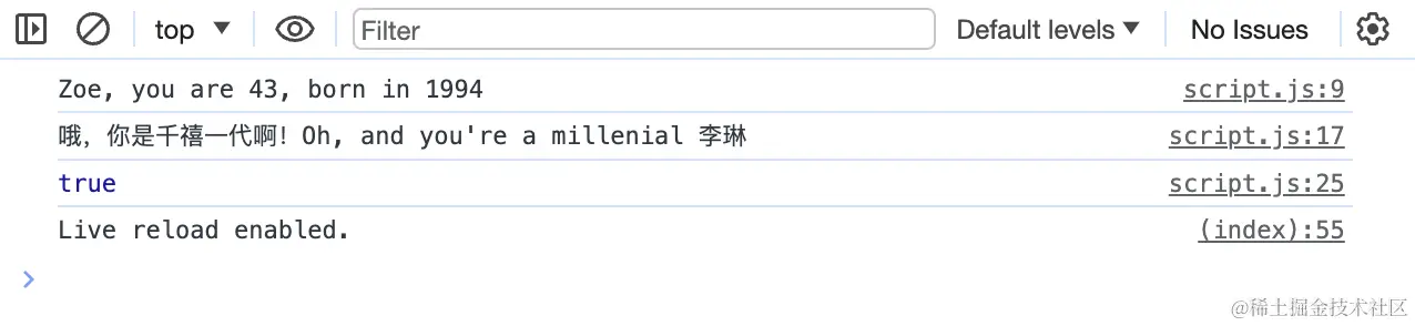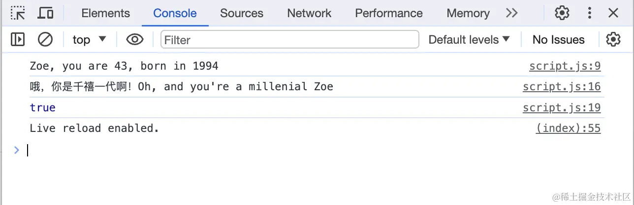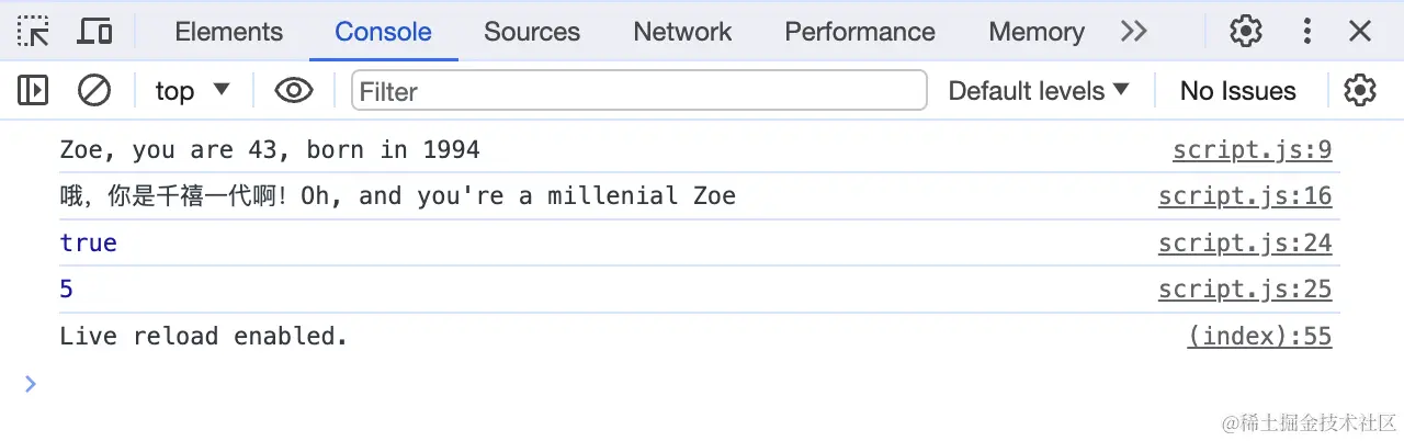 // console.log(age); // Uncaught ReferenceError: age is not defined