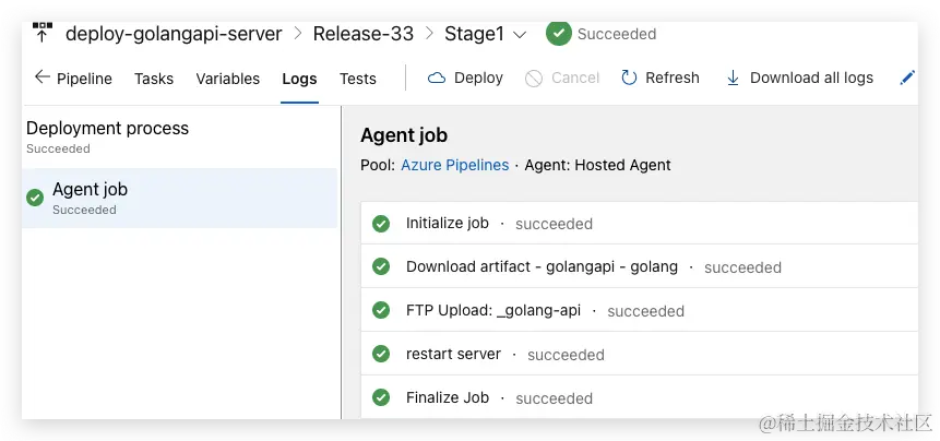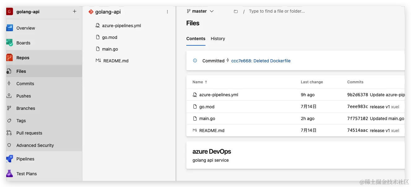 至此完成了利用Azure Repos进行代码托管,Azure Repos类似github/gitlab等源码托管平台,利用Pipelines进行代码构建,利用Release进行发布,联动功能实现出发代码修改,自动完成CI/CD整套流程。
