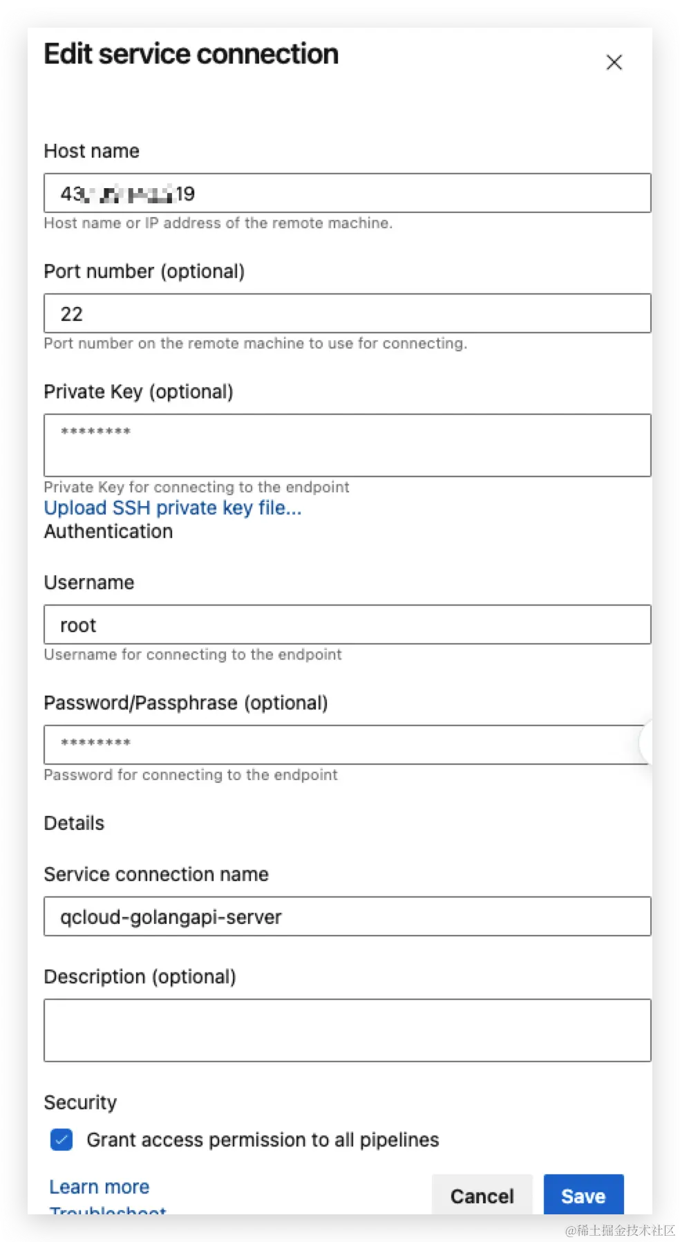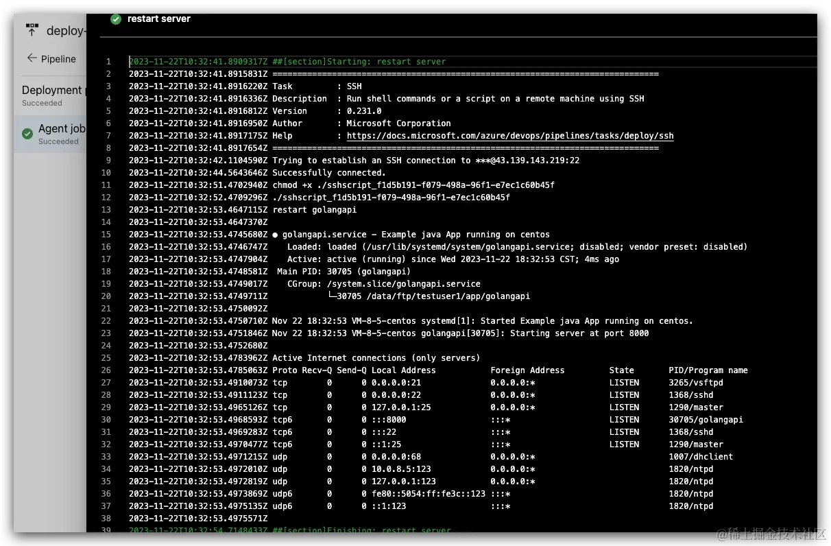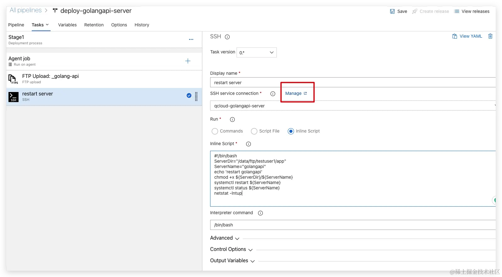 以及完成了Pipelines中的将源码构建出二进制文件,在此案例中将其利用FTP发不到腾讯云轻量服务器中,完成服务部署。