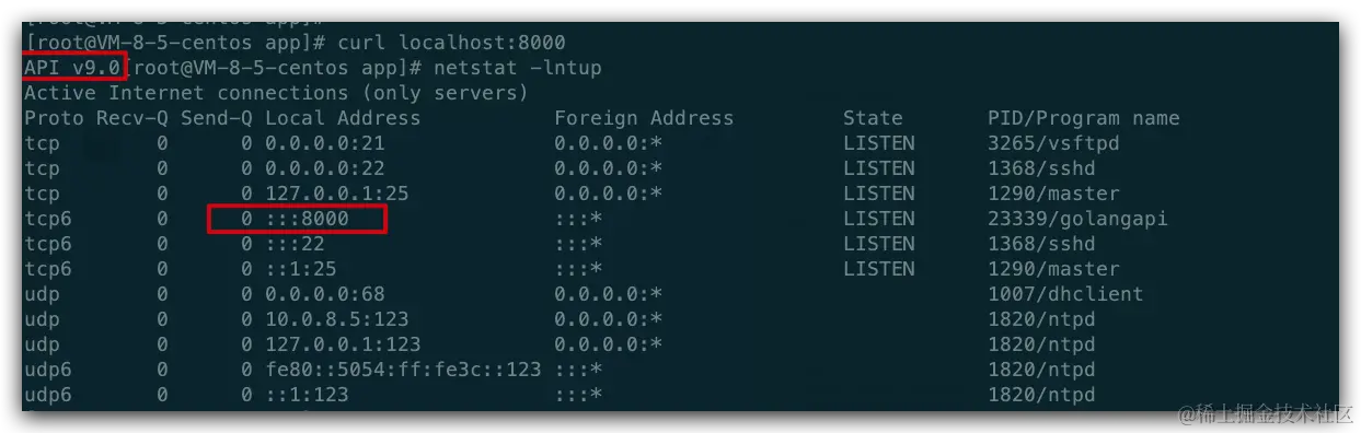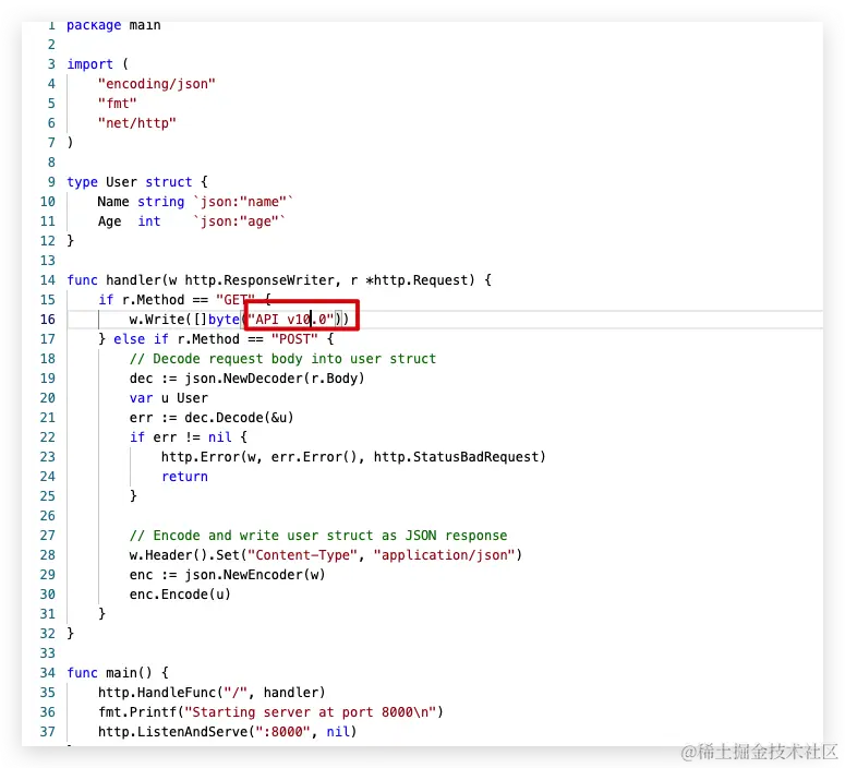 在此利用gin编写一个简单的web服务器,监听8000端口,发送get请求返回API 版本,代码结构及内容如下: