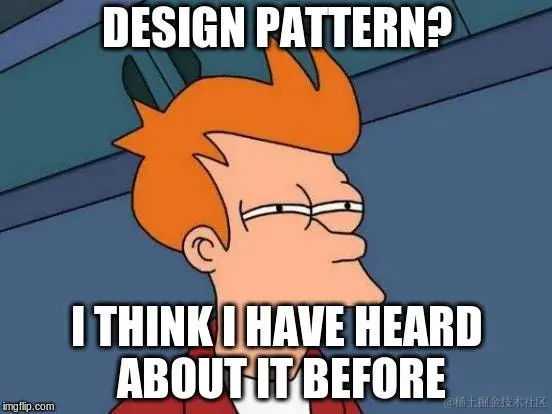 这是一个笑话, 记录了大多数开发人员在被问及设计模式时的表情.