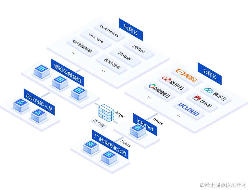 德迅云安全的堡垒机提供多云主机资产的运维审计功能,覆盖SSH、RDP、VNC、Telnet、FTP/SFTP等多种协议,同时支持通过浏览器Web页面和本地C/S客户端工具的方式访问主机,为您提供包含事前授权、事中监察、事后审计等完整的运维闭环。