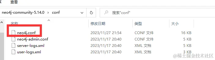 3.配置文件为conf文件下的neo4j.conf,用文本编辑软件打开文件(用记事本也可以,sublime也可以)