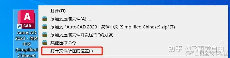 10.在桌面AutoCAD 2023图标上右键,选择【打开文件所在的位置】。