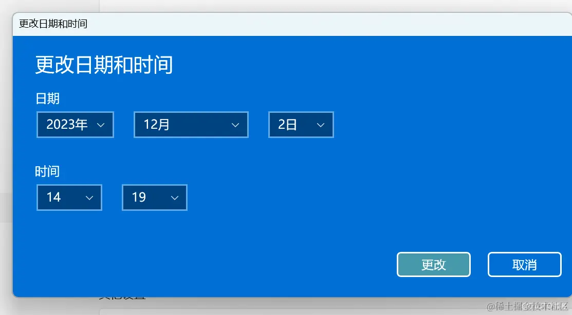 在手动设置日期与时间处选择更改