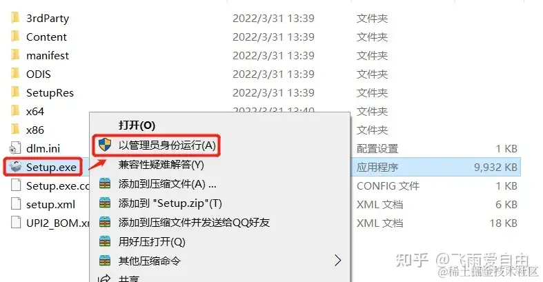 3.选中Setup,鼠标右键选择“以管理员身份运行 ”