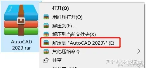 1.鼠标右键解压到“CAD 2023”