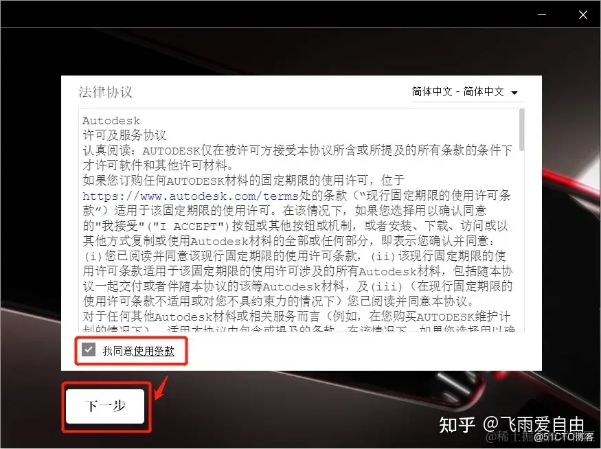 4.勾选【我同意使用条款】然后点击下一步。