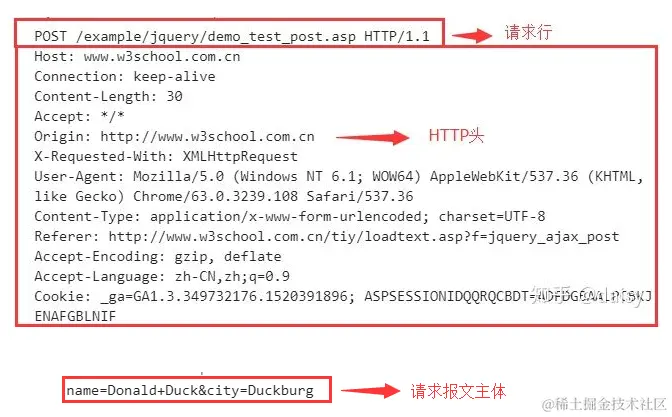 HTTP请求(Request)报文,报文格式为:请求行 – HTTP头(通用信息头,请求头,实体头) – 请求报文主体(只有POST才有报文主体)